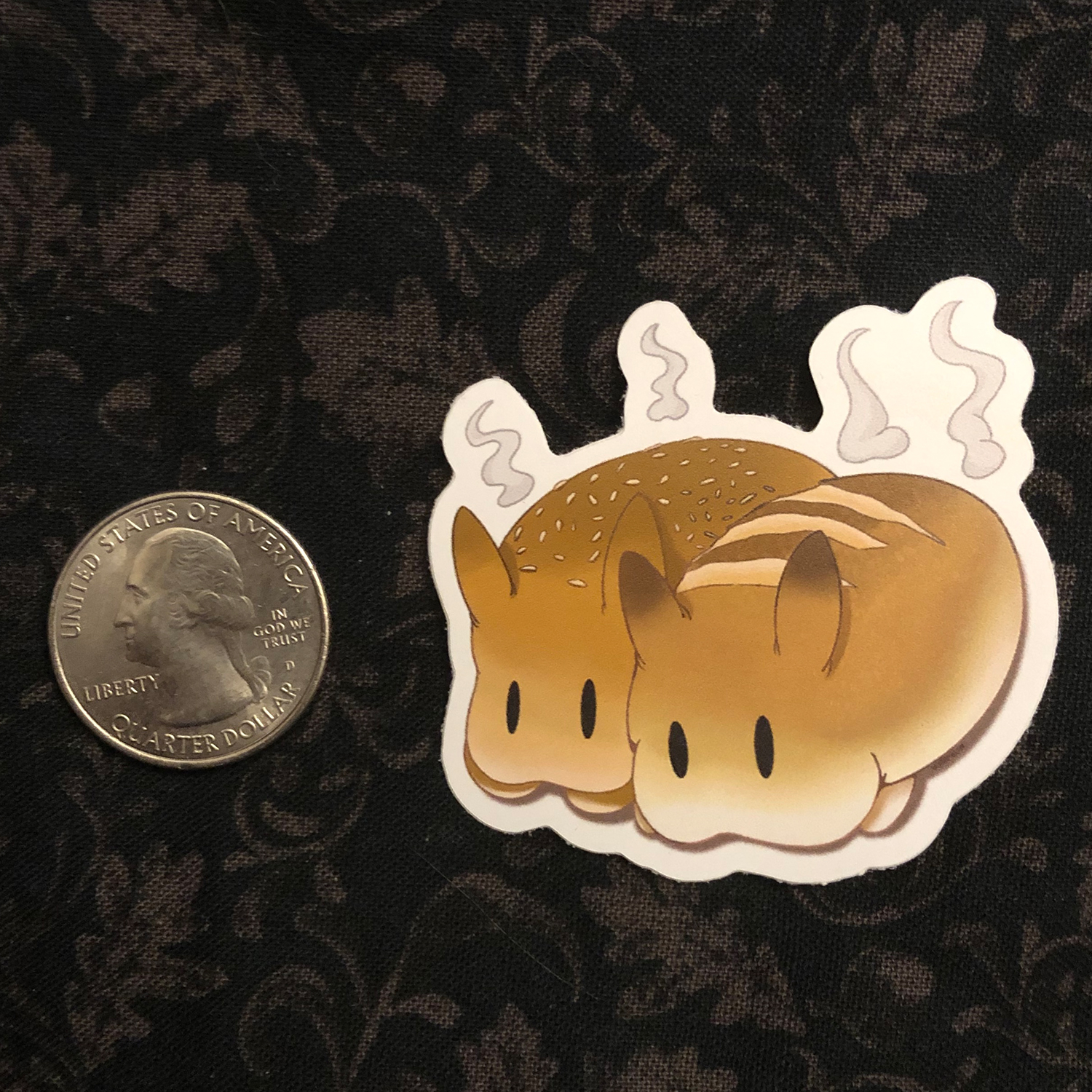 Sticker is around 3 x 1 Inches (Sticker does not really smell like bread, unfortunately!)