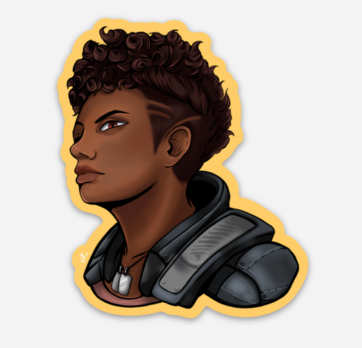 2.51" x 3" Sticker of Bangalore from Apex Legends.